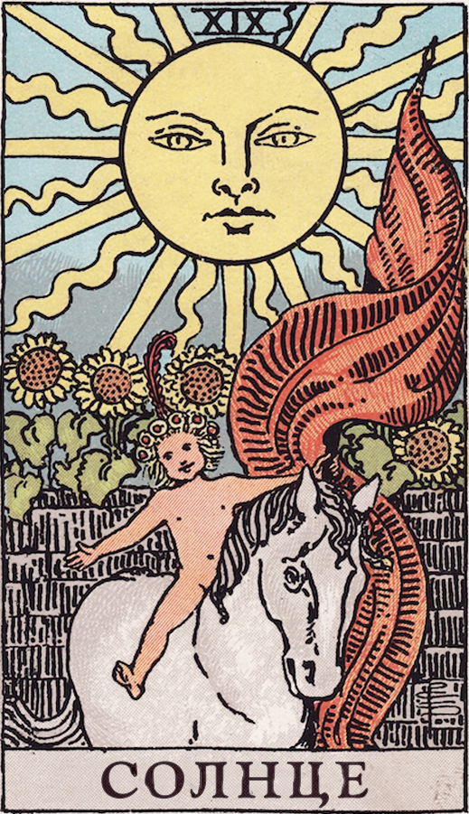 Шут, Вдохновение, поиск истины, способность реализовать себя ; Туз жезлов, Счастье, удача, оптимизм ; Туз кубков, Рог изобилия, счастье ;Туз мечей, Вы сможете избавиться от ярма ;Туз пентаклей, Получение внезапной прибыли, хорошее материальное положение