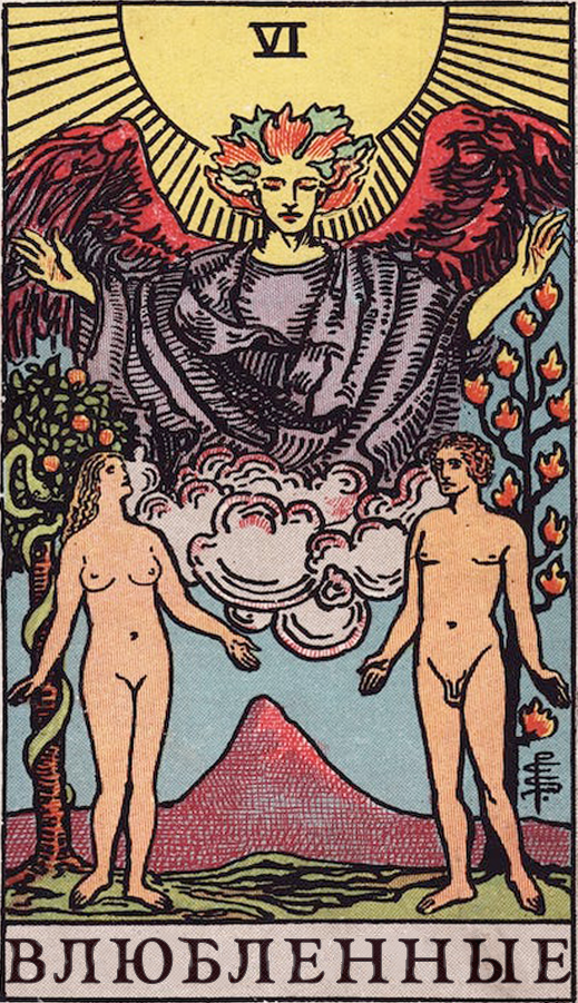 Влюбленные;Тройка жезлов, Убедитесь, что делаете все правильно;Тройка кубков, Душевные метания;Тройка мечей, Несостоявшаяся свадьба;Тройка пентаклей, Любовник, богатый, с хорошим положением в обществе