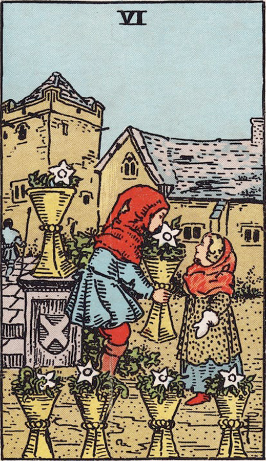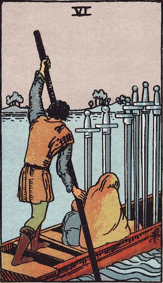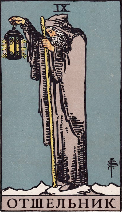 Отшельник, упустить возможность ;Шестерка жезлов, пойти за большинством, выбрать выигрышный вариант ;Шестерка кубков, жить прошлым, взгляд назад ;Шестерка мечей, прокладывать маршрут, искать спасения ;Шестерка пентаклей, перспективы финансовой помощи