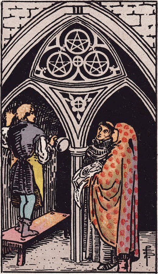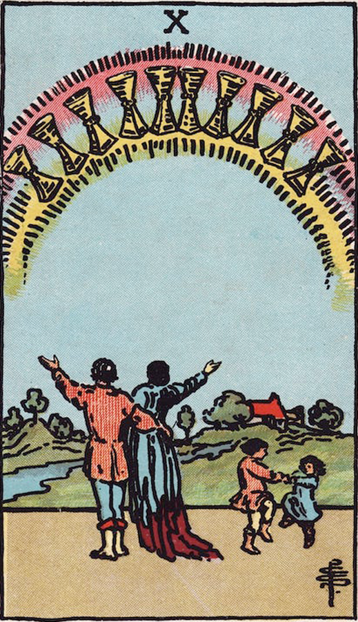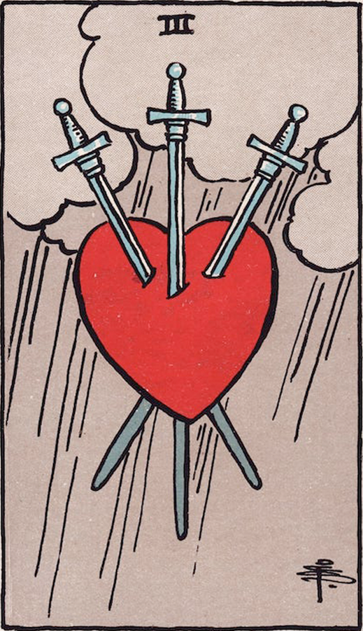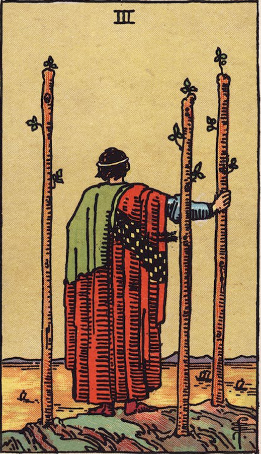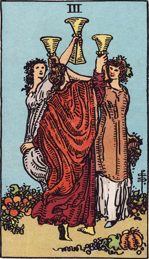 Влюбленные, параллельные отношения ;Тройка жезлов, от обдумывания до результата один шаг ;Тройка кубков, планирование торжественного события ;Тройка мечей, разрыв ;Тройка пентаклей, перспектива профессионального развития