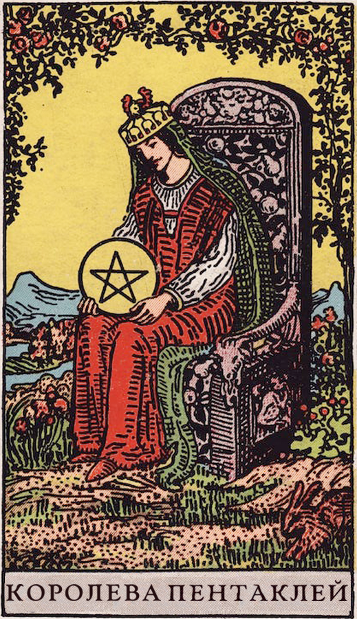 Жрица, выведать секрет ;Королева жезлов, взять власть над собственной жизнью, следовать совету матери ;Королева кубков, планы относительно Королевы ;Королева мечей, расстаться с прошлым, принять независимый образ жизни ;Королева пентаклей, планы относительно некой практичной Дамы